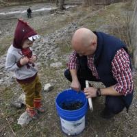 Rep. Bob Merski stocks trout in an Erie stream ahead of the start of fishing season.