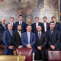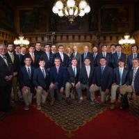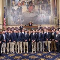 Rep. Melissa Shusterman welcomes Devon Prep's baseball team to the House chamber for winning this year's PIAA championship.